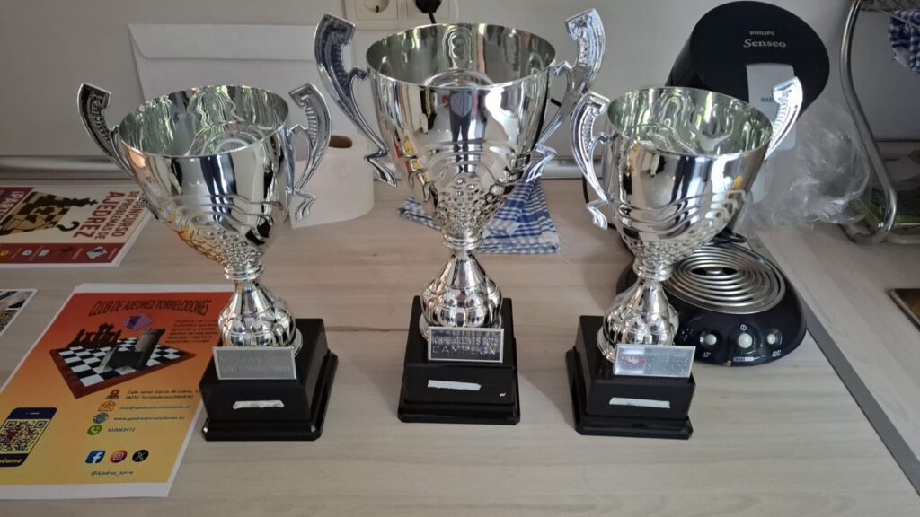 Le acompañaron en el podio Ernesto Montoya, del club Amigos del Ajedrez Educativo de San Lorenzo del Escorial, y Roger Julián, también de nuestro club, en tercer lugar.