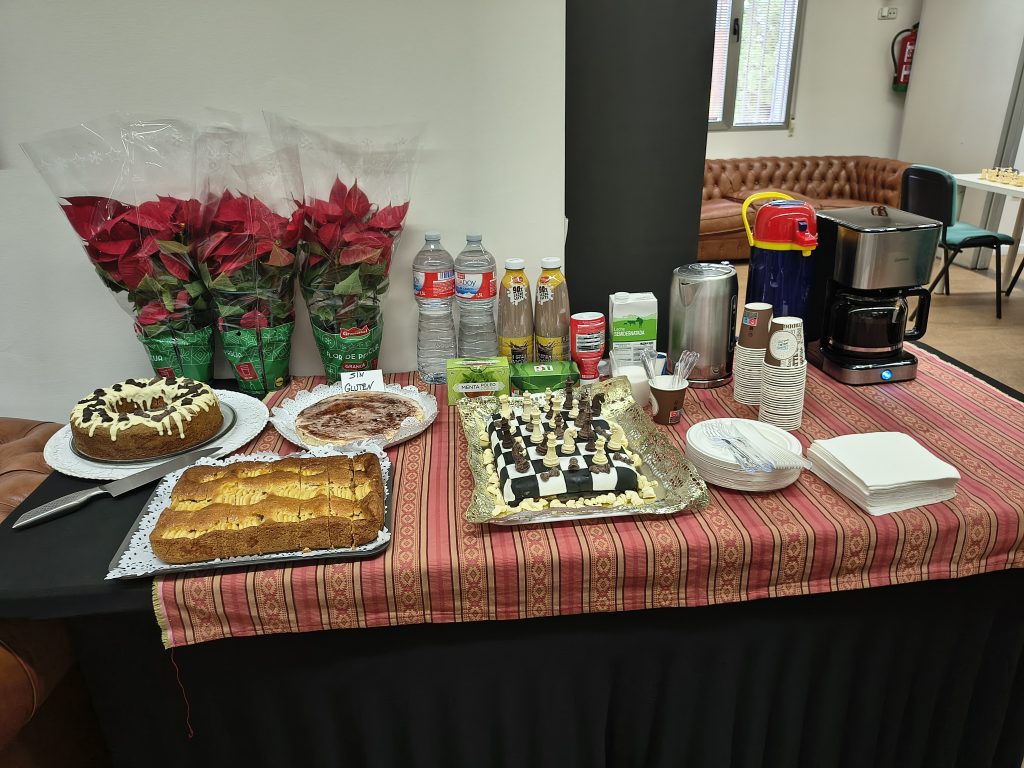 El torneo estuvo amenizado, como en años anteriores, con un excelente desayuno, cortesía del club organizador, en el que ya es tradición una tarta de ajedrez casera que reproduce el tablero en un bizcocho sobre el que se colocan las piezas… ¡de chocolate!